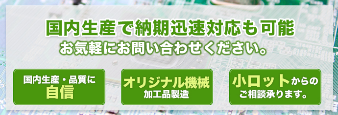 オリジナル機械加工品製造を国内で生産しており、高品質で納期も迅速に対応致します。また、小ロットからでも生産可能なのでまずはお気軽にお問い合わせください。