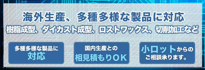 | 国内生産&海外生産 | ダイカスト、鋳物、ロストワックス、規格品の製造、輸入販売 |